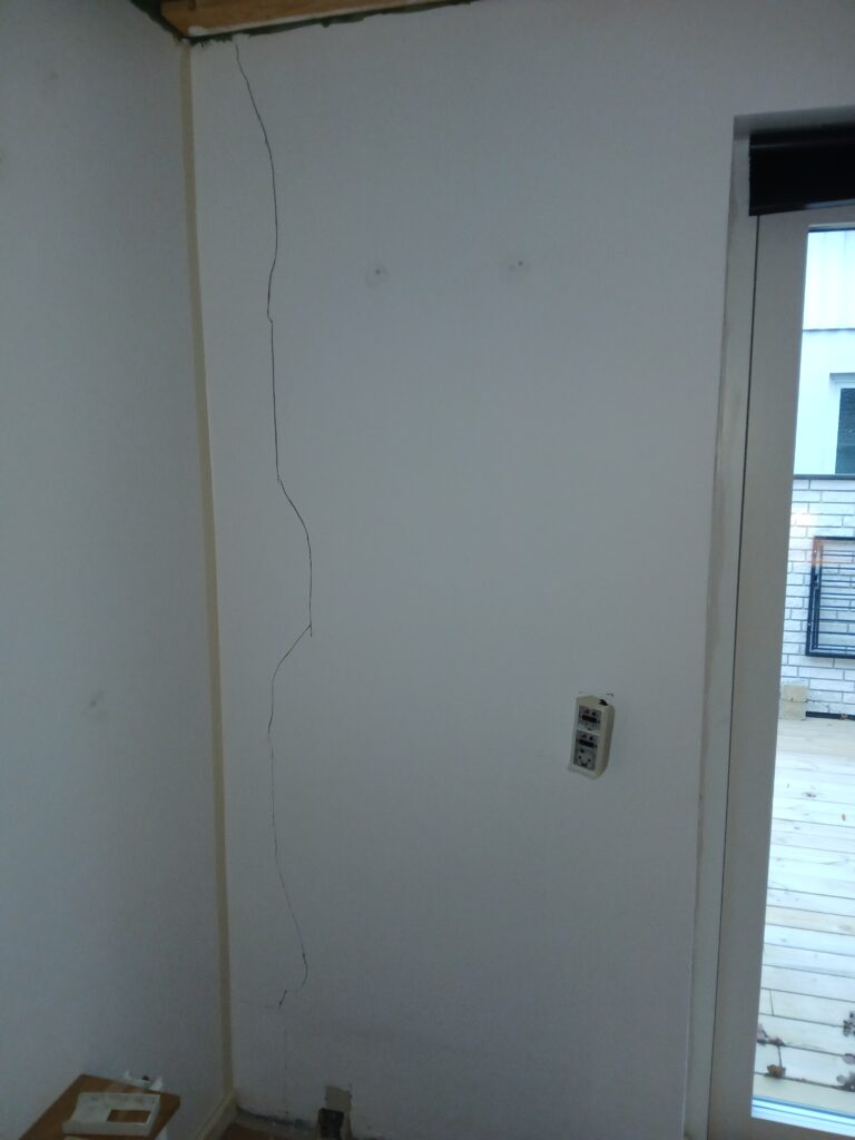 Vi har netpudset en mindre væg med tyndpuds for at udbedre en sætningsrevne.
