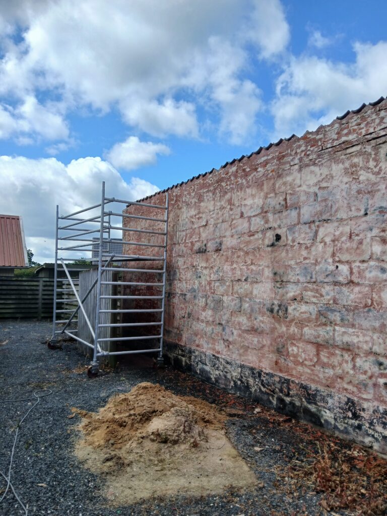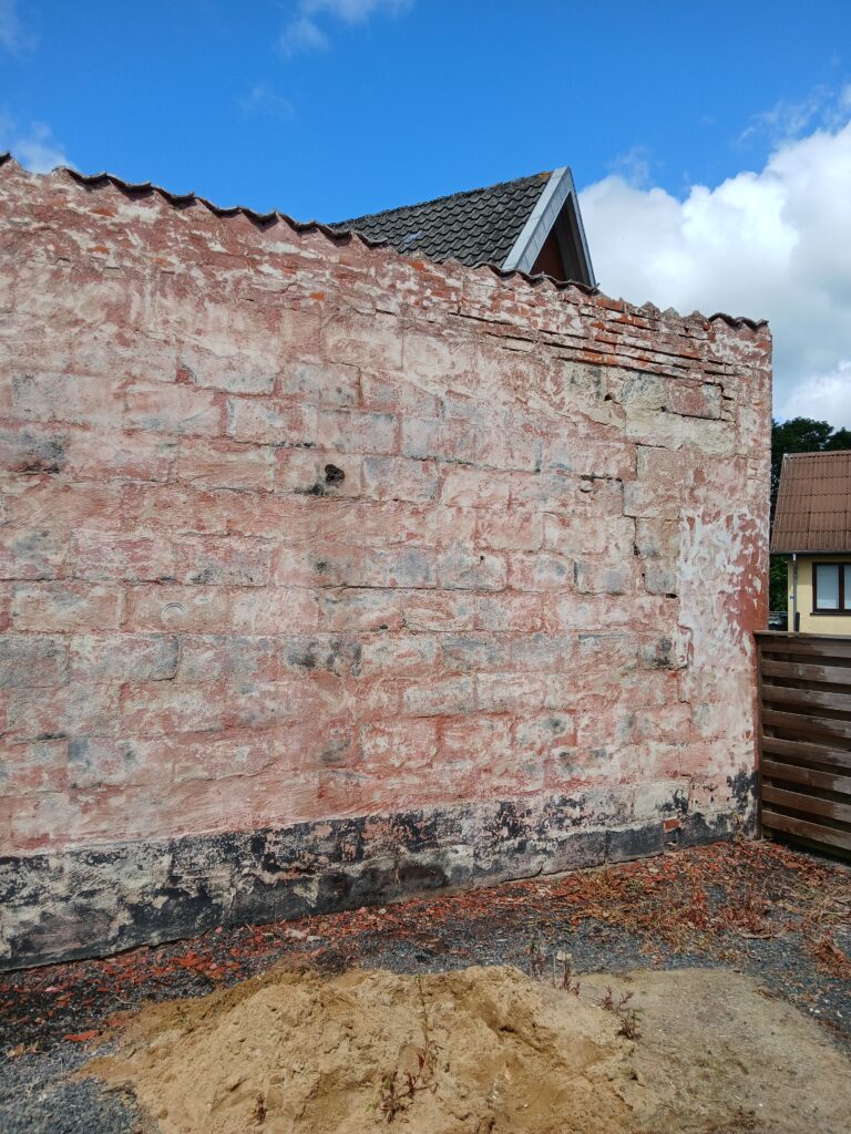 På denne opgave stod vi for at slibe og netpudse en ældre garagevæg, som med tiden havde fået et slidt udseende og ikke længere var i den bedste stand. Netpudsningen gav væggen nyt liv og en mere holdbar overflade. Kunden havde desværre ikke tagstenene til rådighed på daværende tidspunkt. Væggen er nu klar til næste trin, når materialerne er på plads.