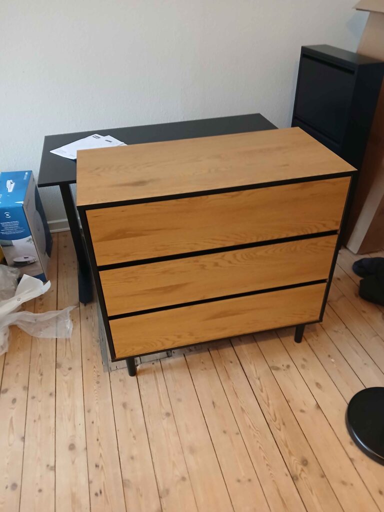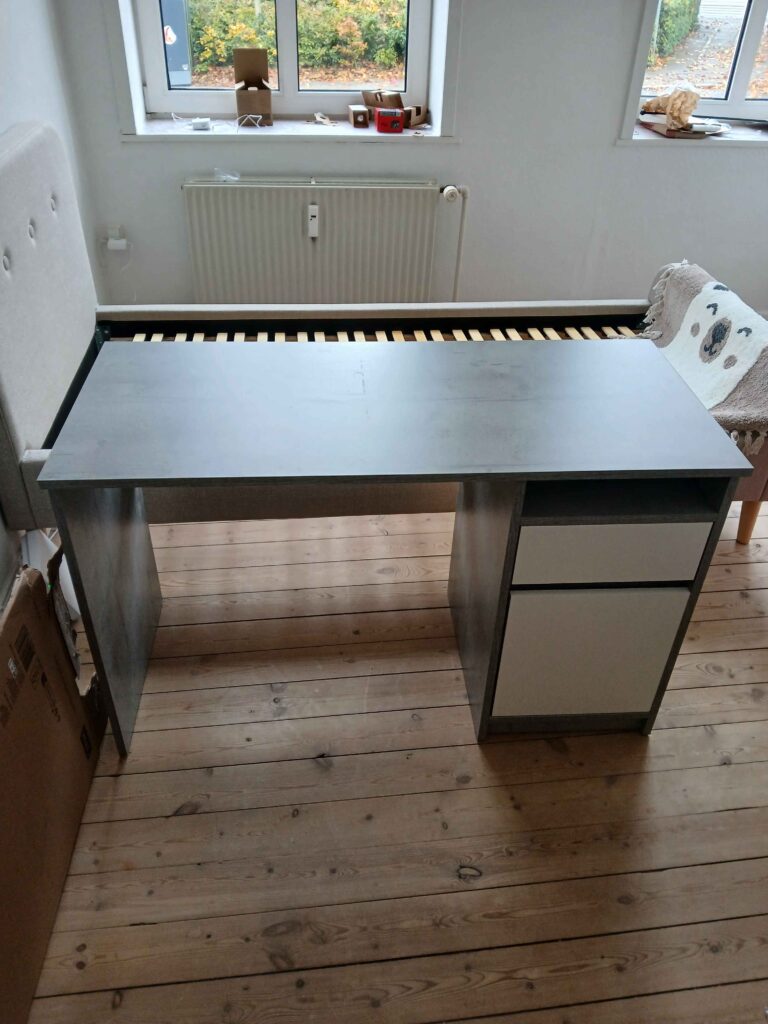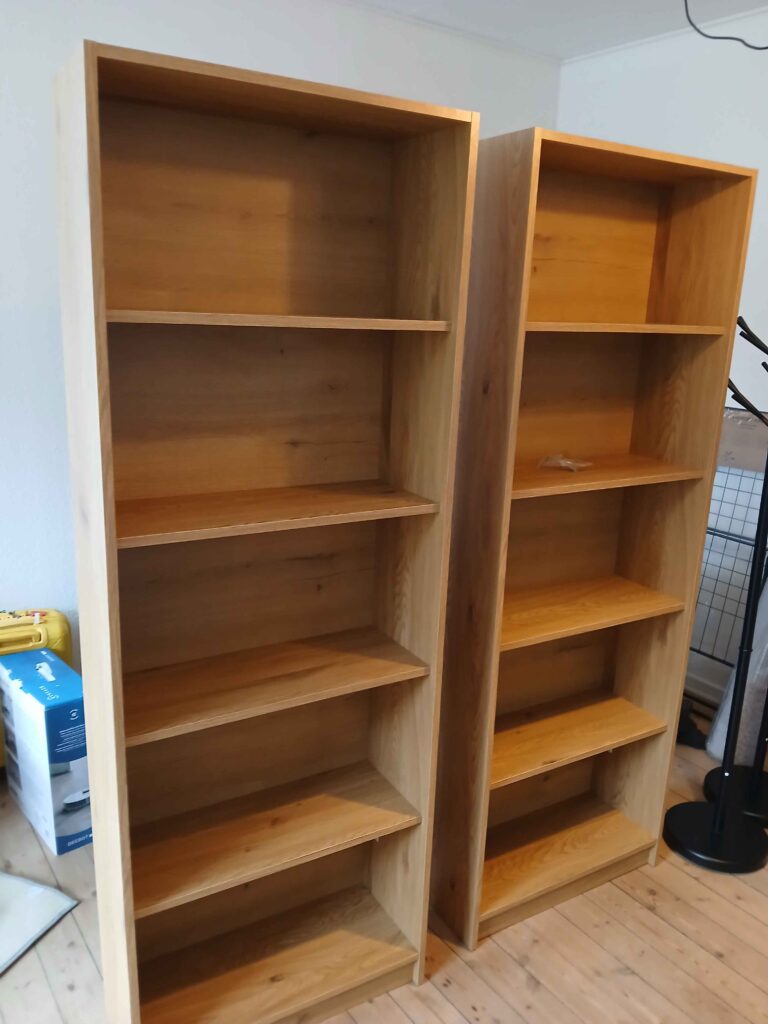 Vi har hjulpet kunden med at samle 3 skabe, 2 reoler og 2 computerborde. Resultatet er korrekt monterede møbler, klar til brug og med et flot, professionelt finish.